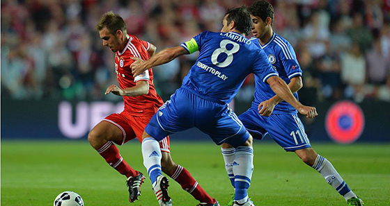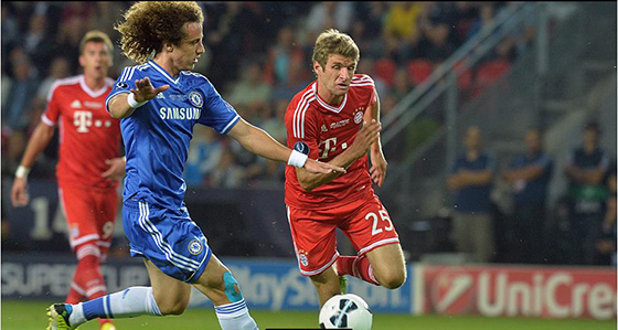 тренерскую дуэль европейского футбола. Бавария же затаила обиду на лондонцев после поражения в финале Лиги чемпионов, нанесенного ей на родном стадионе. По словам помощника Хосепа Гвардиолы и долголетнего тренера молодежной команды Баварии Херманна Герланда у мюнхенцев до сих пор зуб на Челси и спустя 468 дней они жаждут мести. Расправляться с Челси Бавария собиралась без Бастиана Швайнштайгера, который не успел залечить травму лодыжки, полученную во встрече с Фрайбургом. Немного неожиданно, его позицию в центре поля занял номинальный защитник капитан команды Филипп Лам.