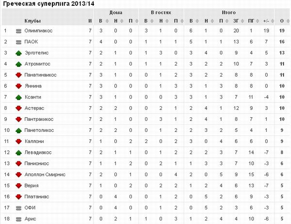 По три пункта на свой счет записали Панаитоликос и Левадиакос, обосновавшиеся по соседству в середине турнирной таблицы. "Возвращенцу" из второго дивизиона помог неувядающий Анри Камара, для которого точный улар в ворота Яннины стал первым, но, надеемся, далеко не последним в чемпионате. И, наконец, ОФИ снова скатал ничейку — для критян она стала уже пятой в семи турах. При полном отсутствии побед.
