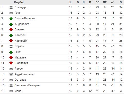 Вот уже 15 туров позади в чемпионате Бельгии, а значит, клубы уже прошли половину дистанции "регулярки". Как раз ближе к экватору понемногу начала обостряться и борьба за лидерство, которую поначалу с большим запасом выигрывал у всех Стандард. Неизбежный спад льежцев позволил конкурентам сократить отставание от команды Гая Лузона, и сейчас группа сразу из четырех преследователей наступает ей на пятки.