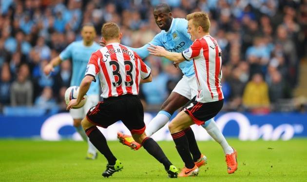 Пойет великолепно подготовил команду к этой игре. В первом тайме именно Сандерленд выглядел сильнее. Аутсайдеры прессинговали Сити на всех участках полях и проводили быстрые контрвыпады. Один из них еще в начале матча увенчался забитым голом. Фабио Борини великолепно реализовал выход один на один, еще больше утвердившись в сознании фанов Сандерленда как практически культовый герой.