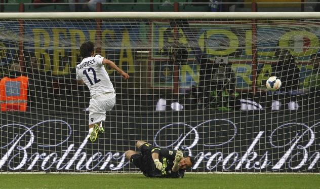 Зато теперь у алленаторе Интера не будет причин жаловаться на судей – в пользу его команды наконец-то поставили пенальти, но это ей не помогло. Исполнять 11-метровый взялся недавно вышедший на поле Диего Милито, и Курчи разгадал его замысел. А в концовке Интер и вовсе мог проиграть – Самир Ханданович парировал два удара Роберта Аквафрески.