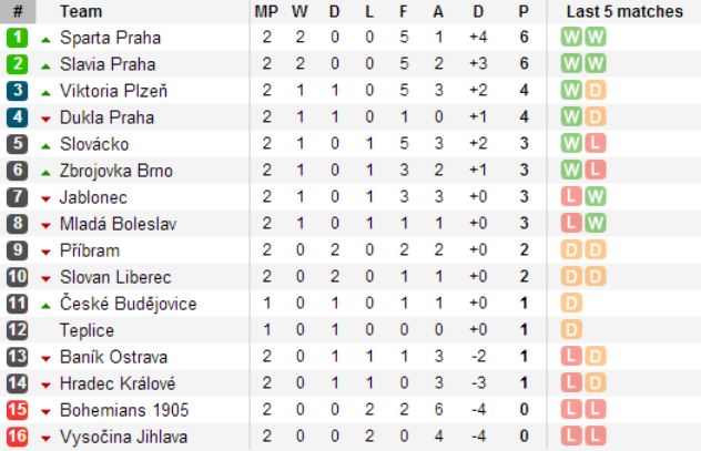 После поражений Яблонеца и Млады Болеслав от пелотона оторвался пражский дуэт в лице Спарты и Славии. Обе команды одержали уверенные победы во втором туре, забив по три мяча Высочине и Банику соответственно.