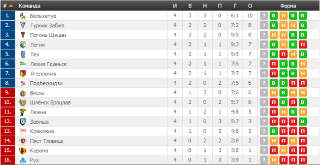 Не пропустила и Погонь из Щецина, которая первые три тура возглавляла турнирную таблицу. Проблема в том, что, несмотря на обилие моментов, игроки Погони так и не сумели распечатать ворота Пяста Гливице.