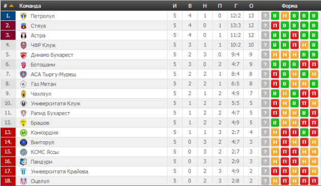 7 – Кешеру (Стяуа), 5 – Таде (ЧФР Клуж), Тамуз (Петролул).
