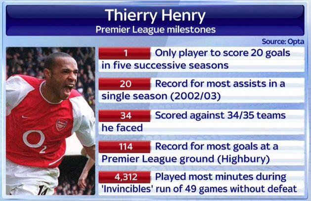 - И это правда. И это часть игры. "Если ты выходишь на поле, значит, ты можешь играть", — я часто себе говорю это. Людям необязательно знать, хорошо ли ты себя чувствуешь или плохо. Случалось, я заходил с мыслями: "К черту это, Тьерри, сегодня ты ни на что не способен!" Но знали бы вы, как часто я забивал в тех матчах. Помню матч Лиги чемпионов против Спарты в Праге. Я только-только оправился после травмы ахилла, накануне вечером я провел первое тренировочное занятие. Менеджер сказал мне, что я поеду с командой, но останусь на скамейке запасных. Тогда Хосе Антонио Рейес сломался на старте матча. Я даже не смотрел на тех, кто пошел разминаться, так как был уверен, что не буду играть. Однако менеджер сказал мне готовиться. Я вышел и забил два мяча, побив рекорд Иана Райта (185 голов за Арсенал). Даже находясь не в лучших кондициях, нужно верить в то, что ты способен помочь команде.