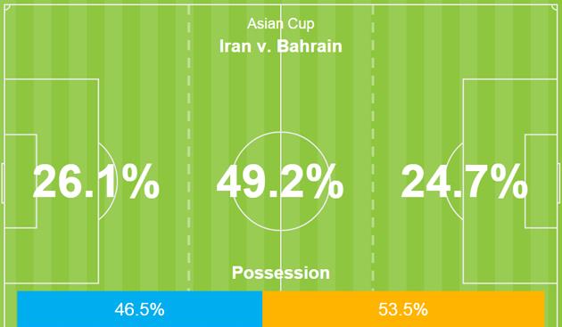 В параллельном матче встречались сборные Ирана и Бахрейна. Мелли не стали откладывать дело в долгий ящик и сразу же начали штурмовать ворота Джаафара. Дийя, сыграв на грани офсайда, из убойной позиции пробил над перекладиной, Дежага не реализовал чистый выход один на один, Некунам неудачно исполнил штрафной и не попал по воротам с 25-ти метров – это лишь краткий пересказ событий первого тайма. Нет, Бахрейн не отсиживался в обороне и долгое время даже сохранял равенство в статистике владения мячом, но по опасным моментам Иран был далеко впереди. Чего не скажешь о реализации.