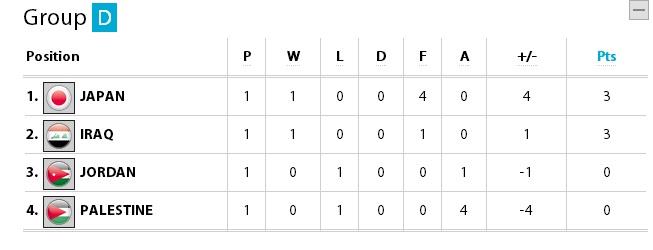 После перерыва очень быстро провели четвертый свой гол подопечные Хавьера Агирре. Синдзи Кагава исполнил классную подачу на дальнюю штангу, где Йосида перевисел в воздухе соперника, головой отправив мяч в сетку. Все было давно решено, но палестинцы не хотели проигрывать еще крупнее. За грубый фол в центре поля и вторую желтую карточку досрочно отправился в раздевалку Ахмад. Примечательно, что именно после удаления создали свой момент палестинцы. Аль Бахдари пробил головой с близкой дистанции мимо цели после подачи с углового. Разгромная победа Японии в первом туре позволила Самураям уверенно возглавить свою группу.