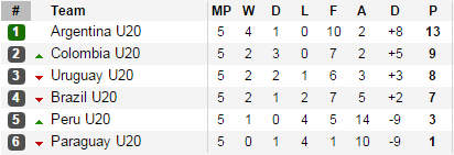 Сборная Аргентины в последнем туре молодежного чемпионата Южной Америки обыграла Уругвай, став чемпионом и завоевав путевку на Олимпийские игры-2016.