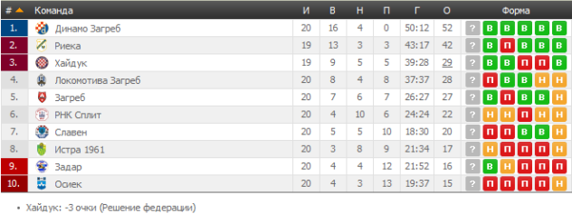 21 – Крамарич; 12 – Чоп (оба покинули чемпионат Хорватии); 10 – Радонич (Истра).