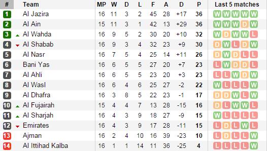 Впрочем, ни на шаг от Аль-Джазиры не отстает и Аль-Айн – команда Златко Далича одержала уже три победы кряду. Причем в пятницу Аджман был повержен со счетом 7:1: дубли записали на свой счет Кембо-Экоко и Аль-Катхири, один раз отличился и словацкий легионер Миро Стох. Таким образом, сейчас у Аль-Джазиры и Аль-Айна по 36 очков, но у последнего на один матч меньше – в запасе еще есть игра с Аль-Фуджайрой.