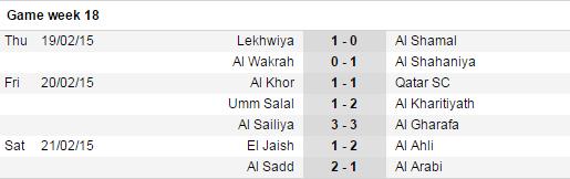 Из других результатов стоит отметить – домашнее поражение Аль-Вакры от Аль-Шаханийя (0:1), после которого главный тренер хозяев Нуреддин Зекри был отправлен в отставку. Новым наставником Аль-Вакры уже назначили серба Горана Туфегджича, который ранее возглавлял сборную Кувейта и в 2010 году выиграл с ней Кубок Наций Персидского залива.
