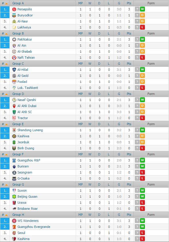 В группе F ожидаемой победы добились фавориты квартера — Гуанчжоу Фули. В первом тайме Хамдаллах, продемонстрировав отменный дриблинг, вывел Гуанчжоу вперед, а за 10 минут до финального свистка Ван Сон удвоил преимущество китайцев, забив со штрафного. Правда, не без помощи рикошета.