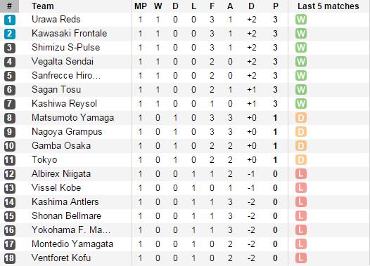 В тоже время вице-чемпиону удалось начать чемпионат с победы. Урава Редс приехала в гости к дебютанту лиги Сенан Бельмаре и на 36-й минуте хозяева вышли вперед. Эндо реализовал пенальти – 1:0. Но в дальнейшем сказался более высокий класс гостей. Перед перерывом Короки, опередив на мгновение вратаря, ценой повреждения замкнул навес со штрафного. А на 75-й минуте Угайин с линии штрафной вколотил мяч в дальний верхний угол ворот – 1:2. Насу, через несколько мгновений замкнувший прострел, избавил красных от нервной концовки.