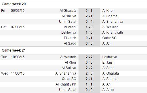 Еще одним интереснейшим матчем на прошлых выходных была встреча Эль-Джаиша с СК Катар. Третья и четвертая команда чемпионата провели боевой матч, который закончился минимальной победой гостей – единственный гол за десять минут до финального свистка забил Чо Ен Чхоль. Благодаря этому подопечные Шенаишила сравнялись по очкам с Эль-Джаишем.