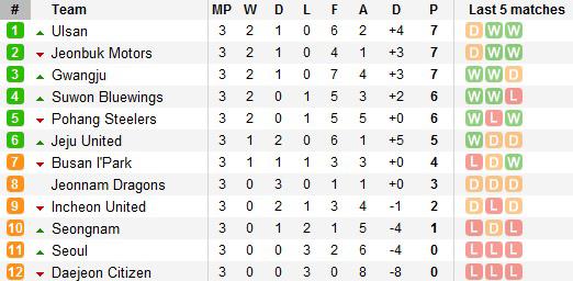 До сих пор ни одного очка не набрал и бронзовый призер минувшего чемпионата Сеул. Сеунг Дае оформил дубль в этом матче, забив в ворота столичной команды в середине каждого из таймов. Гости сквитали один мяч лишь на 86-й минуте.