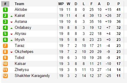 Кайрат только подписал капитана сборной Украины Анатолия Тимощука, поэтому в Караганды против главного аутсайдера сезона он не играл. Зато поработавший в низших дивизионах чемпионата Украины новый наставник Шахтера Игорь Захаряк доверил место на поле новичку своей команды Максиму Фещуку. Опытный форвард вышел на поле в перерыве, но это не спасло команду от разгрома. Отметим дубль бывшего игрока Черноморца Сито Риеры.