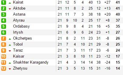 Зато Кайрат даже благодаря ничьей вышел на первое место, обойдя в таблице Актобе по разнице мячей.