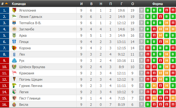 Дышат в спину Ягеллонии и гданьская Лехия на пару с Термаликой, которые в минувшем туре также выиграли свои матчи. Троевластие в верху турнирной таблицы пока что никак не дает разобраться, кто настоящий фаворит. Скорее всего, на этот вопрос суждено будет получить ответ где-то туров через пять, когда хоть кто-то оторвется от другого на какие-то очки. Пока же, польская Экстракласа невероятно радует не только тем фактом, что в ней имеется огромная интрига наверху, а еще и высоким шансом получить нового чемпиона. Это связано в перв