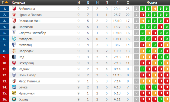 Лидерство Црвены Звезды казалось твердым до поры до времени, ведь Партизан сдал позиции в старте сезона, а остальные сербские команды слабо воспринимаются как претенденты на чемпионство. Правда, вот незадача – подопечные Миодрага Божовича совсем забыли о Войводине, которая то и дело все время дышала в спину лидера. Матч на выходных Войводине удался, ведь они дома обыграли Борац, но еще ранее, в среду команда Ненада Лалатовича (который, кстати, 10 матчей в качестве игрока провел за Шахтер) наконец-то сыграли свой перенесенный матч с Нови Пазаром. На данный момент Войводина лидирует в Суперлиге с отрывом в один пункт с Црвеной Звездой, и вот матч следующего тура как раз будет между лидерами таблицы.