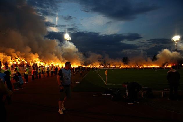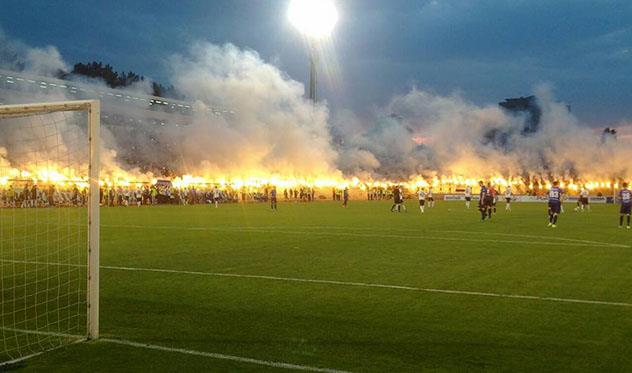 Во время празднования чемпионства Партизана на стадионе было в буквальном смысле жарко — ведь огонь был разведен по всему периметру.
