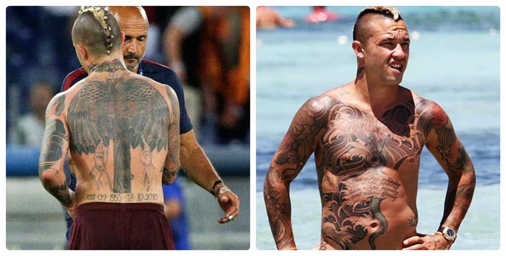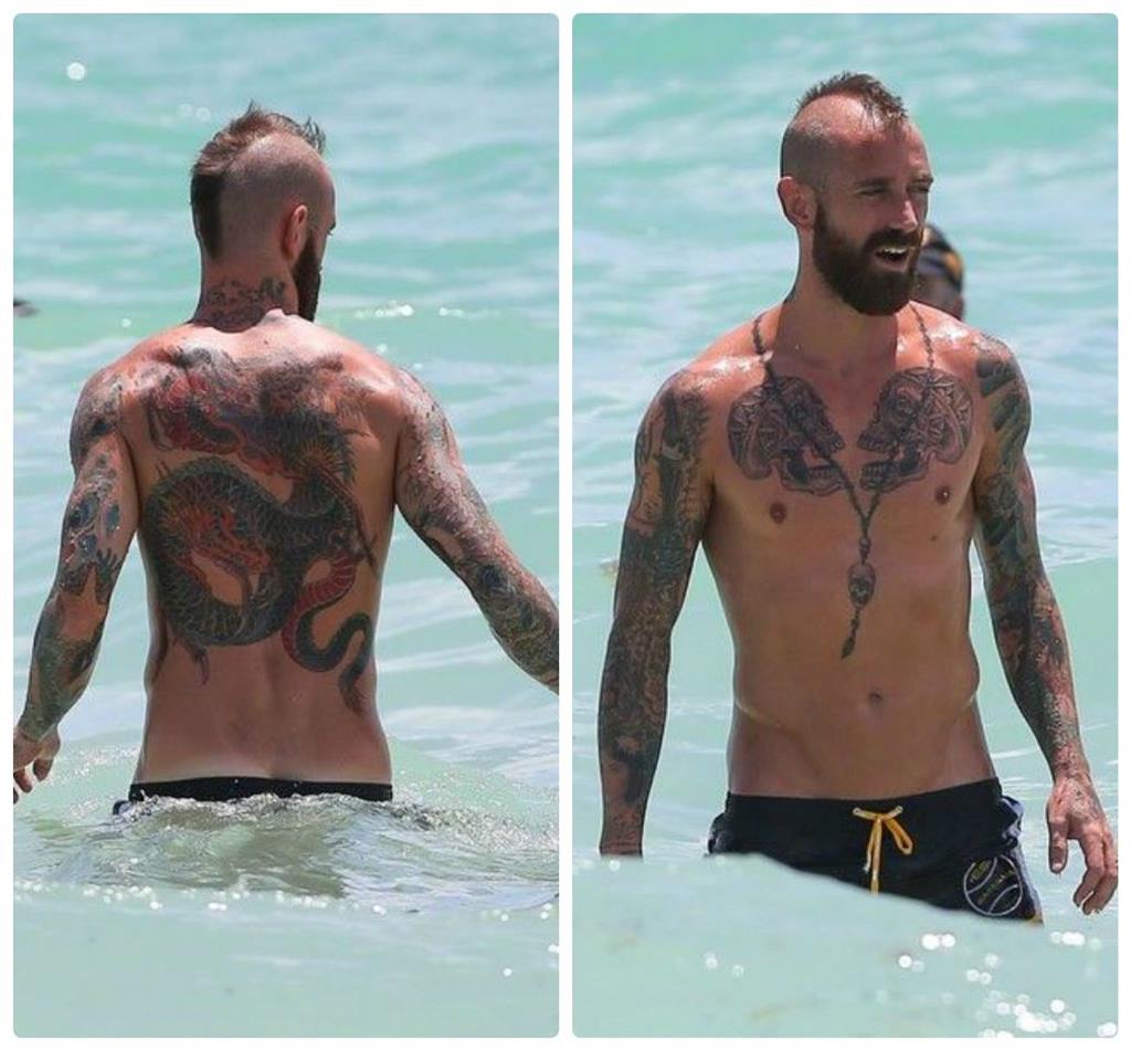 Его татуировки занимают практически всю площадь кожи футболиста. Нательное искусство очень гармонично смотрится на теле футболиста и одна татуировка является дополнением второй.