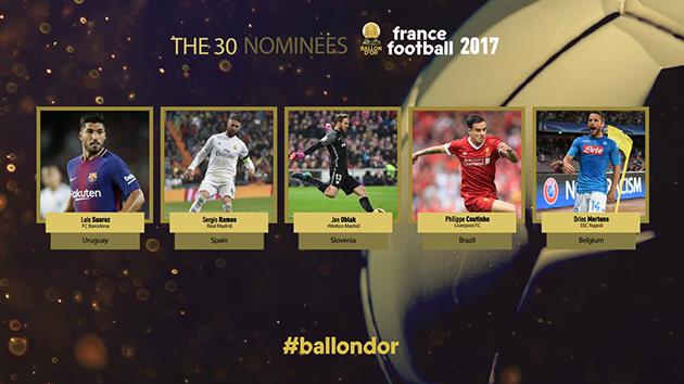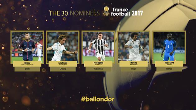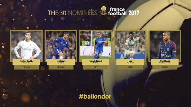 Издание France Football назвало имена 30 претендентов на Золотой мяч-2017.