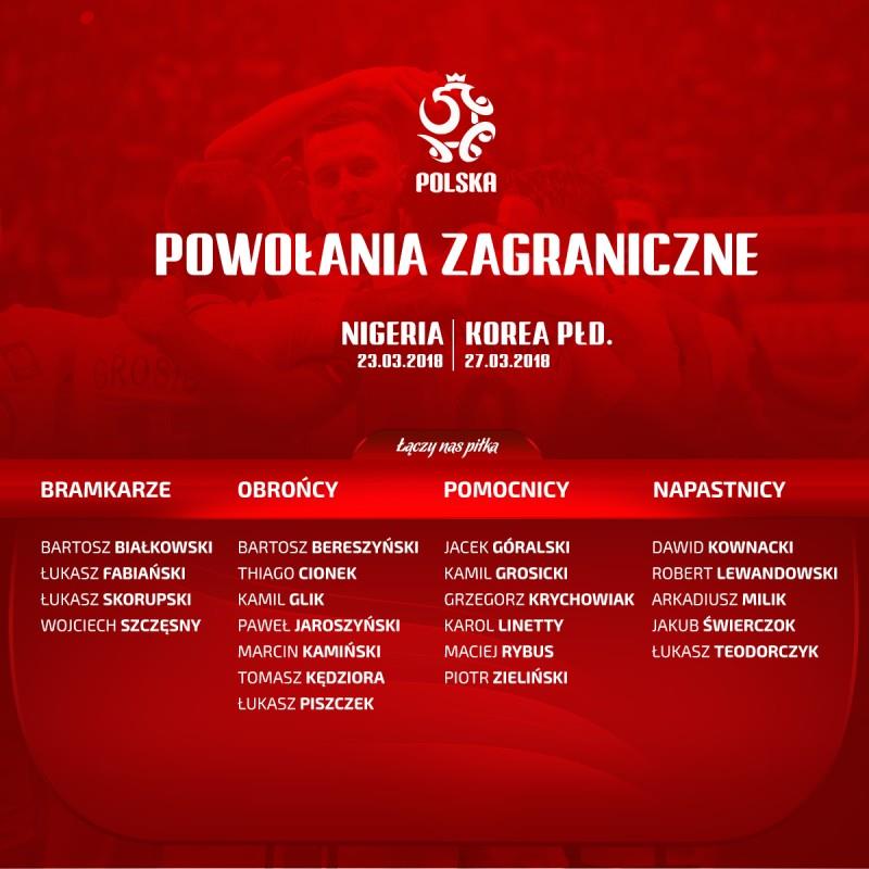 Главный тренер сборной Польши Адам Навалка объявил имена футболистов, выступающих в иностранных лигах, которые получили вызов на товарищеские матчи против Нигерии и Южной Кореи.