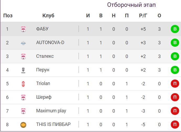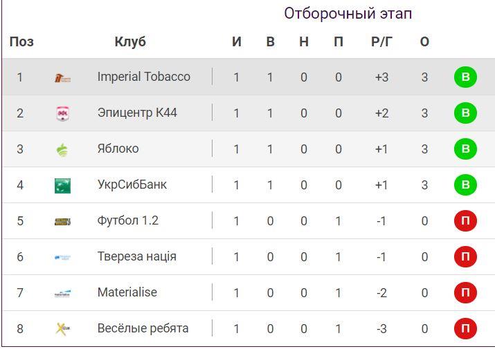 Турнирная таблица Corporate League по итогам 1-го тура:
