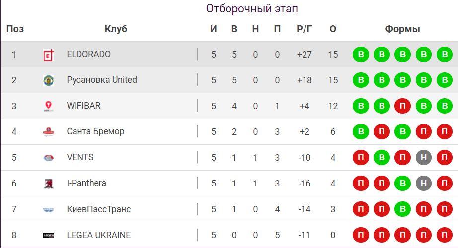 В остальных двух встречах лидеры Premier дивизиона Эльдорадо и Русановка United ожидаемо обыграли своих соперников – LEGEA UKRAINE и VENTS соответственно. Отдельно нужно отметить еще один покер в этом туре, который выдал игрок Русановки – Юрий Виткин.
