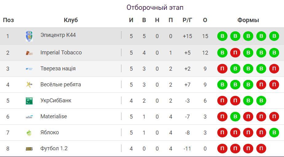 Турнирная таблица Corporate League: