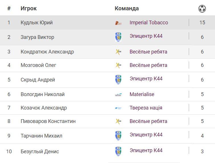 Список лучших бомбардиров Corporate League: