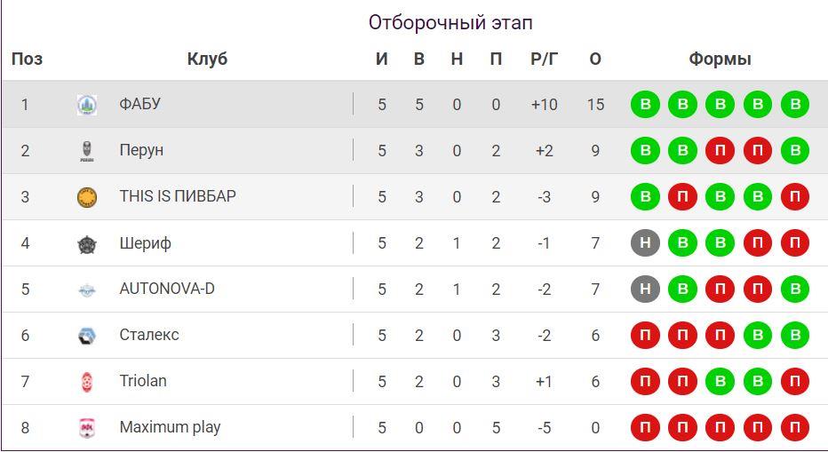 Турнирная таблица First League по итогам пяти туров: