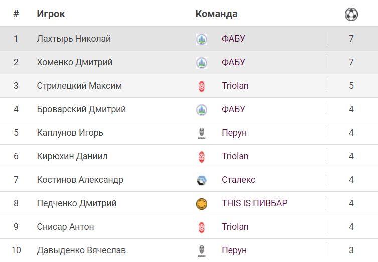 Список лучших бомбардиров: