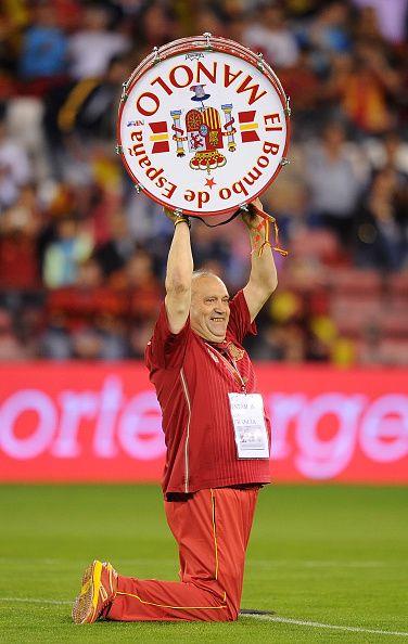 Мануэль Касерес Артесеро, более известный в мире как Маноло Эль Бомбо или Маноло Барабанщик – пожалуй, самый узнаваемый поклонник сборной Испании. Его огромный барабан, в который он лупит без остановки, черный берет и красную футболку "фурии рохи" с 12-м номером можно увидеть практически на любом матче испанской национальной команды. Если его нет – значит, у Маноло серьезные проблемы со здоровьем (хотя как-то раз его привезли на стадион в машине скорой помощи прямо из больницы, и на арену он попал не своим ходом, а на каталке).