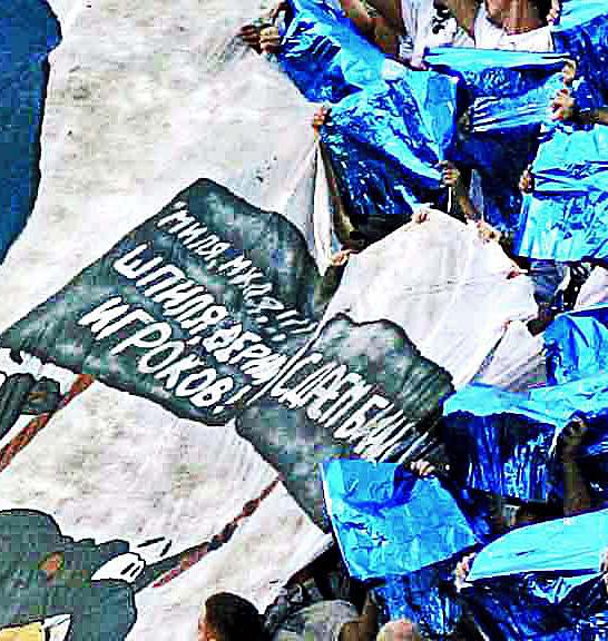 "Миля, Миля! Шпиля, верни игроков!", — такая надпись красовалась на баннере. Так болельщики обратились к главному тренеру команды Алексею Шпилевскому.