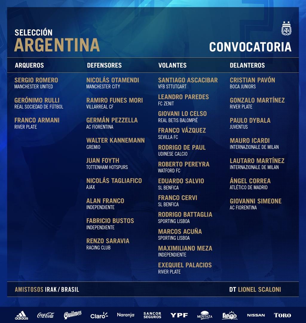 В октябре Аргентина проведет два матча 11 числа с Ираком, а 16 – с Бразилией.