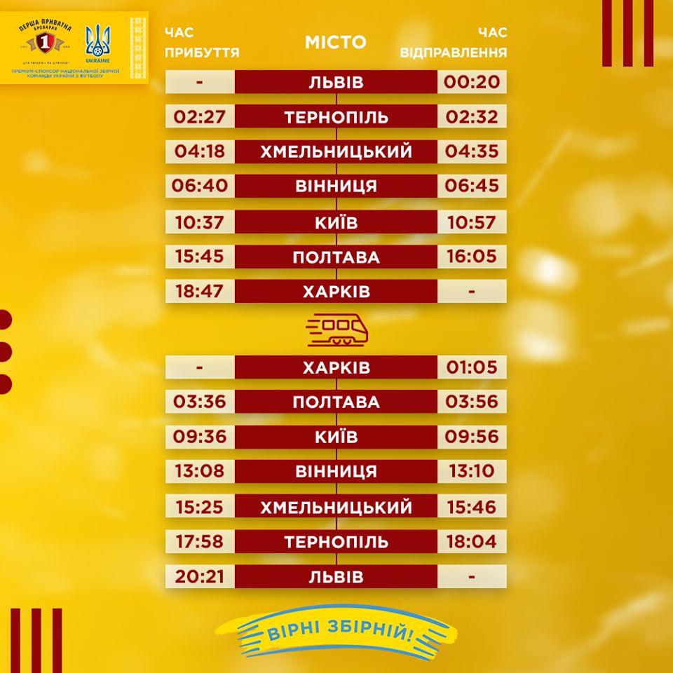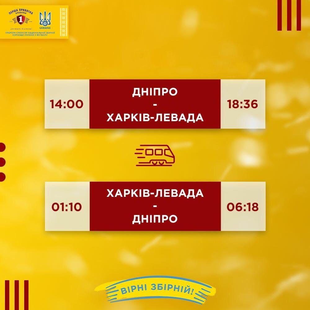 Благодаря премиум-спонсору Национальной сборной команды Украины по футболу –компании "Перша приватна броварня" – фаны со всей страны смогут приехать на матч. Как и в сентябре прошлого года перед матчем с Турцией, совместно с партнером – ОАО "Украинская железная" – "Перша приватна броварня" организует три специальных поезда в Харьков для почти 2 500 болельщиков. Ночью (00:20) 16 октября из Львова в Харьков через Тернополь, Хмельницкий, Винницу и Полтаву отправится первый поезд с фанами, в тот же день утром (8:50) и в обед (14:00) отправятся поезда из Киева и из Днепра. Часть болельщиков приедет автобусами.