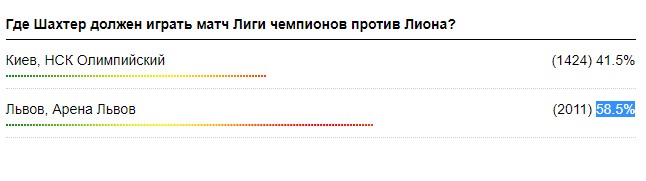 Наш сайт предложил читателям помочь руководству Шахтера определиться с местом проведения важнейшего поединка. Большинство пользователей считают, что матч должен состояться на Арене Львов. За это проголосовало 58.5%.