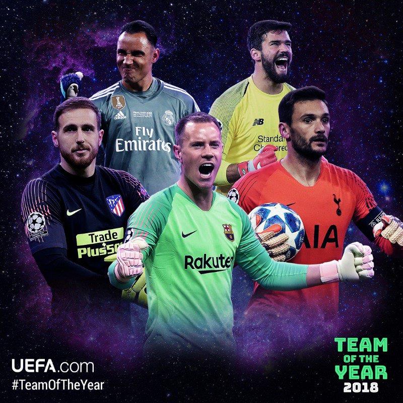 Вратари: Алиссон Бекер (Ливерпуль/Рома, Бразилия), Уго Льорис (Тоттенхэм, Франция), Кейлор Навас (Реал Мадрид, Коста-Рика), Ян Облак (Атлетико, Словения), Марк-Андре тер Штеген (Барселона, Германия);