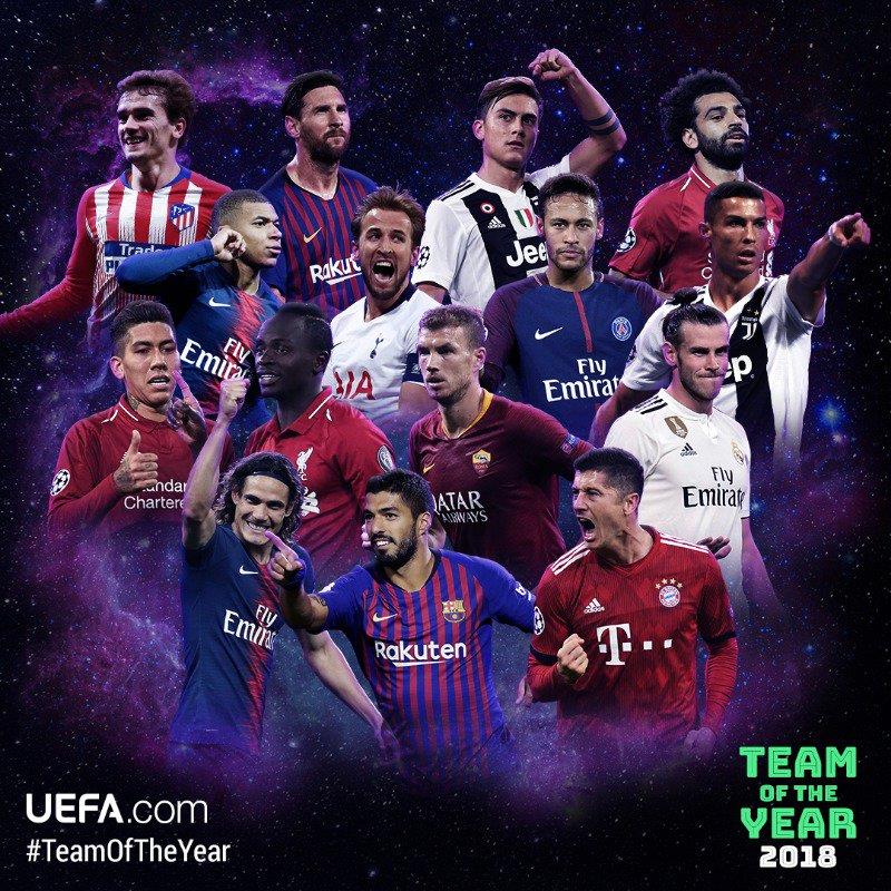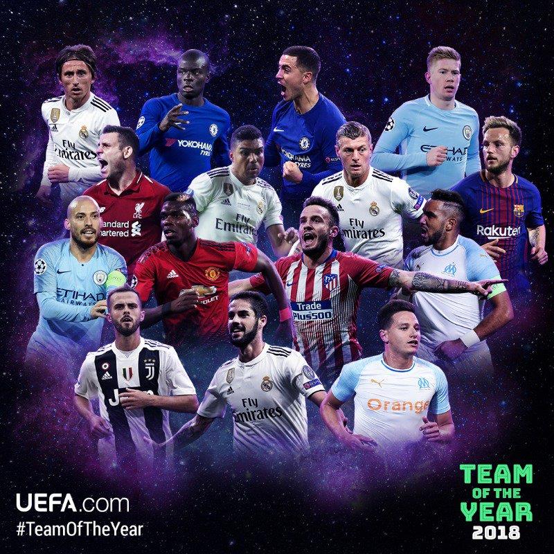 УЕФА традиционно обнародовал список из 50 футболистов, 11 из которых попадут в Команду года-2018.