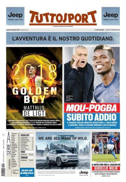 Де Лигт получит награду Golden Boy на специальной церемонии, которая состоится 17-го декабря в Турине. Также нидерландец уже появился на обложке свежего выпуска Tuttosport.