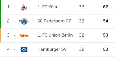 Кельн уже оформил путевку в Бундеслигу. Вопроса два: кто второй и кто сыграет в плей-офф?