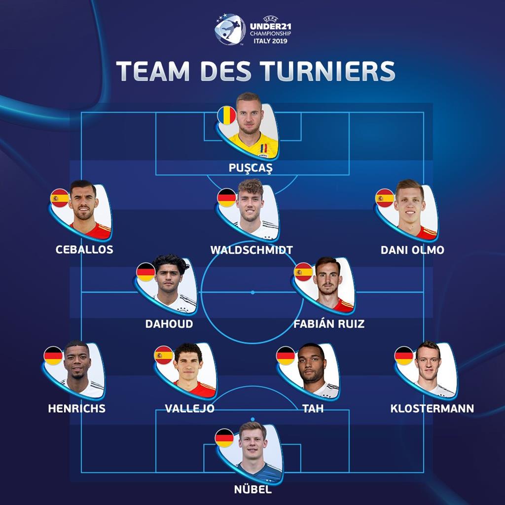 Сборная: Нюбель (Германия) — Клостерман (Германия), Та (Германия), Вальехо (Испания), Хенрикс (Германия) — Фабиан Руис (Испания), Дауд (Германия) — Ольмо (Испания), Вальдшмидт (Германия), Себальос (Испания) — Пушкаш (Румыния).