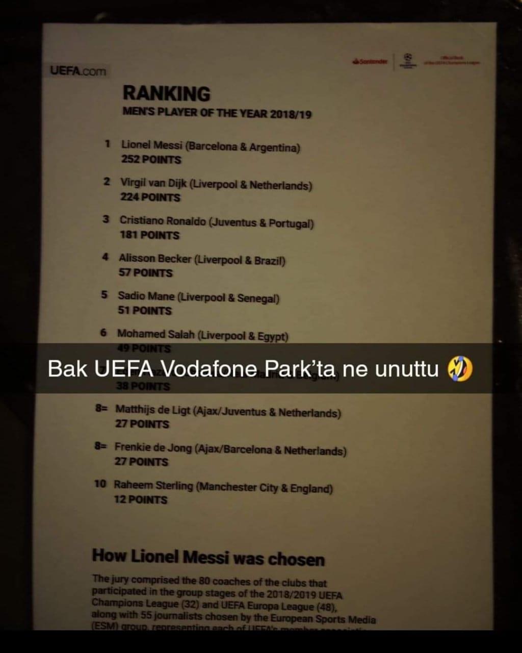 Тем не менее, судя по данным на нем, лучшим игроком прошлого сезона станет нападающий Барселоны Лионель Месси. Он набрал 252 балла. У ван Дайка 224 очка, у Роналду 181.