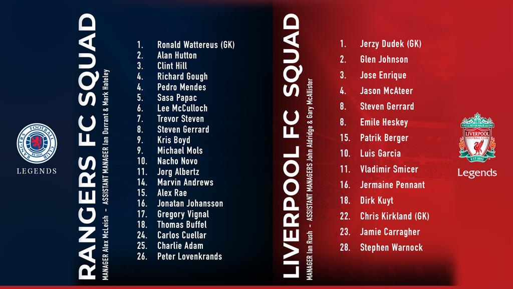 В составах Глазго Рейнджерс и Ливерпуля на поле выйдут Рональд Ваттереус и Ежи Дудек, Ричард Гаф и Джейсон Макэйтир, Крис Бойд и Патрик Бергер, Петер Ловенкрандс и Джейми Каррагер, а также многие другие.
