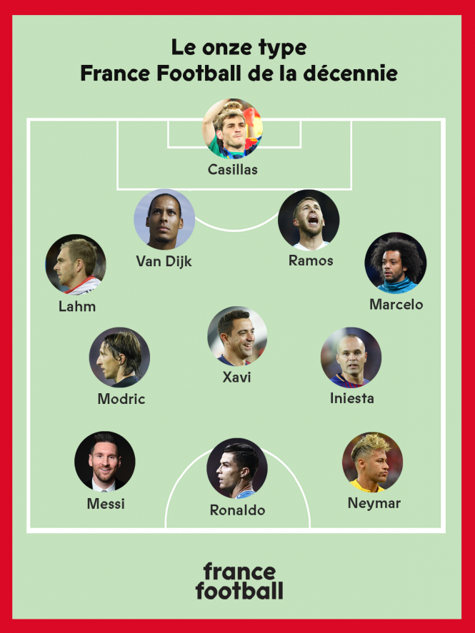 France Football выделил 11 лучших игроков, которые больше остальных проявили себя в 2010-х годах.