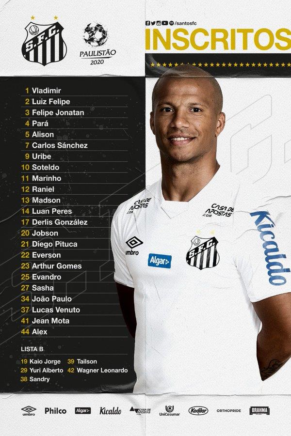 Сантос объявил официальную заявку команды на чемпионат штата Сан-Паулу (Бразилия), который стартовал несколько дней назад.