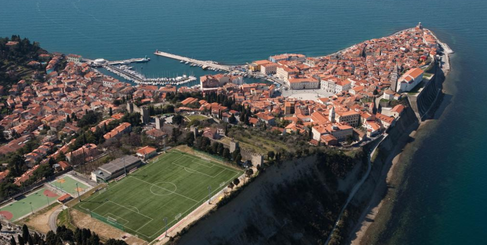 На стадионе выступает полупрофессиональный коллектив Порторож Пиран. Стадион вмещает 750 зрителей. За одной из лицевых линий следут обрыв.