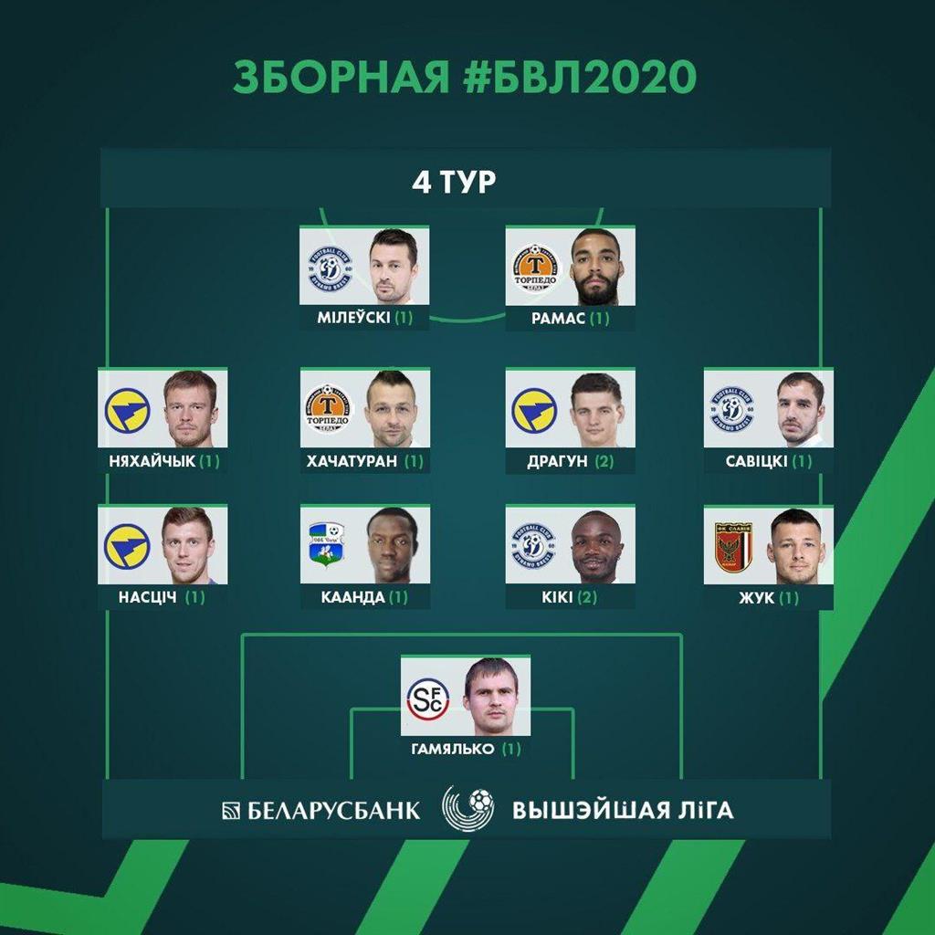 В чемпионате Беларуси завершился четвертый тур, по итогам которого нападающий Динамо Брест Артем Милевский попал в символическую сборную.