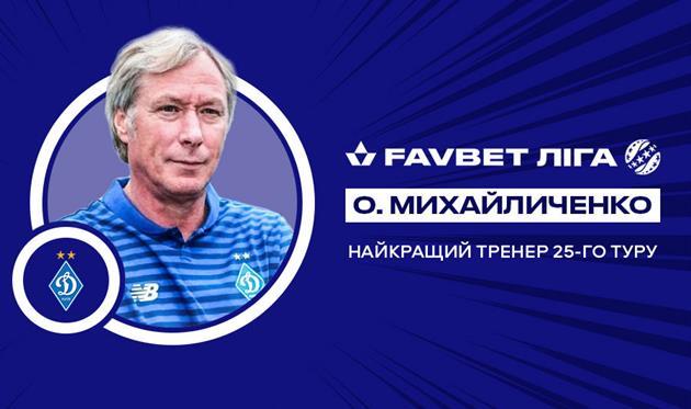 Наставник киевского Динамо Алексей Михайличенко стал лучшим тренером 25-го тура украинской Премьер-лиги благодаря разгромной победе над Александрией (5:1).